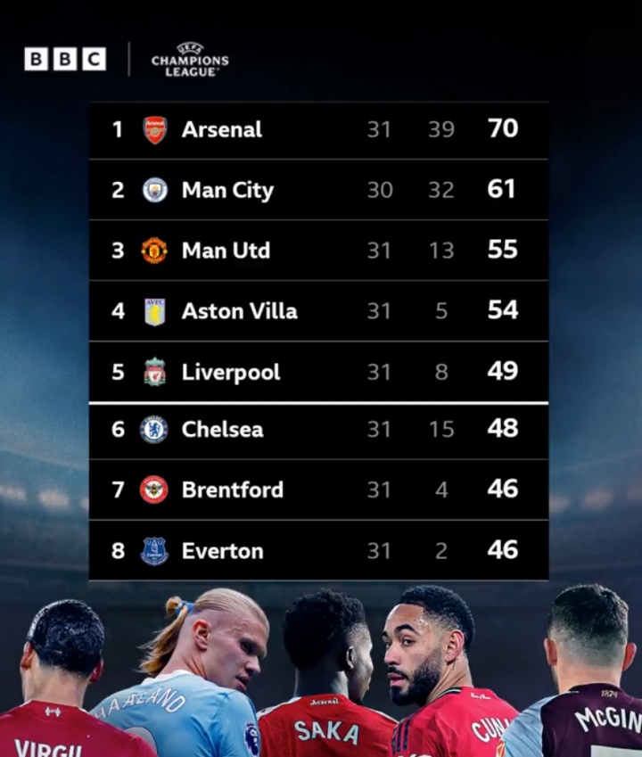 04月08日讯 欧冠8强首回合,阿森纳1-0击败葡体。此役后,英超凭借本赛季的欧战积分达到25.013分,已经确定获得下赛季的一个额外欧冠名额,英超将有5个欧冠名额。